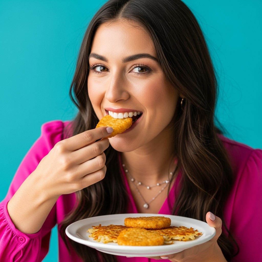 Hash browns are a breakfast dish made from grated potatoes that are pan-fried until crispy and golden brown. They are often seasoned with salt and pepper and can be served on their own or as a side dish with eggs, bacon, or other breakfast foods.