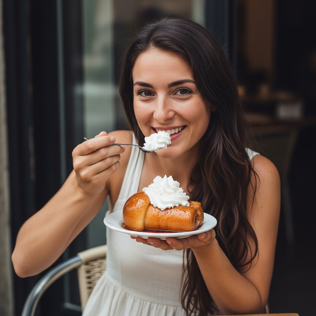 Baba au Rhum is a small, yeast-based cake soaked in rum syrup. Originating from France, it's often served with whipped cream or fruit. The cake is soft, sweet, and has a rich, boozy flavor. It's a popular dessert in French cuisine, known for its moist texture and distinct taste.