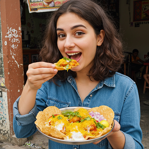 Papdi Chaat is a vibrant Indian street food, combining crisp dough wafers with tangy tamarind, spicy chutneys, and creamy yogurt. Its contrasting textures and flavors create a delightful culinary experience, offering a refreshing taste of Indian cuisine. It's a favorite for its bold spices and lively presentation, capturing cultural richness.