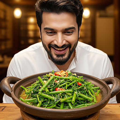 Rau Muong Xao Toi is a vibrant Vietnamese dish featuring tender water spinach infused with aromatic garlic. This quick stir-fry delivers a delightful blend of crisp textures and savory flavors, celebrating the simplicity and freshness of Vietnamese cuisine. It's a perfect side dish, complementing any meal with its refreshing taste.