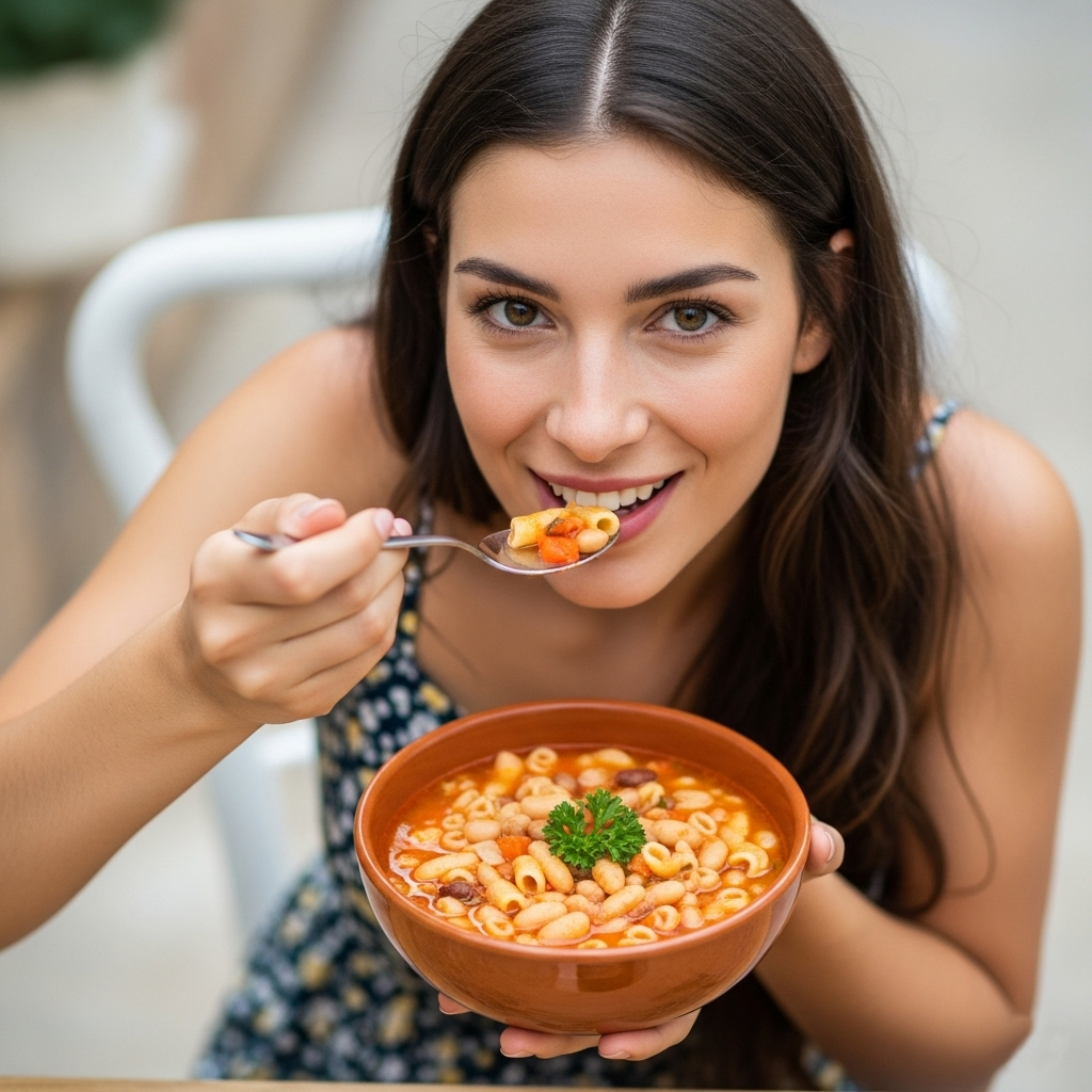 Pasta e Fagioli is a traditional Italian soup made with pasta and beans. It's usually cooked in a savory tomato broth, often with garlic, onions, and herbs. This dish is hearty and comforting, commonly served with Parmesan cheese. It's popular for its rich flavors and satisfying texture.