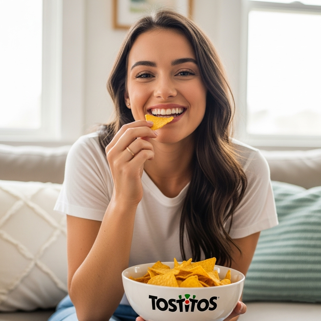 Tostitos are a popular brand of tortilla chips from the United States, made from corn. They are often round or triangular and are commonly served with salsa, guacamole, or cheese dip. Tostitos are enjoyed during parties, sports events, and casual gatherings as a crunchy, flavorful snack.