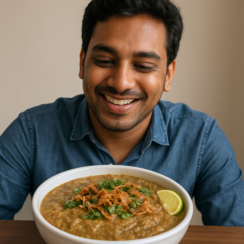 Haleem is a rich, comforting dish originating from the Middle East and South Asia. This luscious stew combines tender meat, lentils, and wheat, slowly cooked to perfection. Its velvety texture and aromatic blend of spices make it an exquisite choice for festive occasions, enjoyed globally for its warmth and depth of flavor.