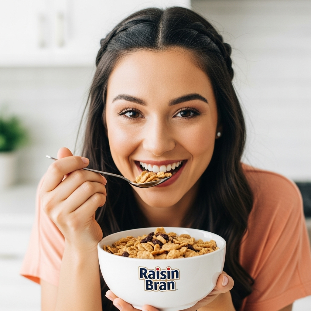 Raisin Bran is a breakfast cereal made from wheat or oat flakes and mixed with raisins. It combines crunchy flakes with sweet, chewy raisins, offering a blend of textures and flavors. Often enjoyed with milk, it's a popular choice for a nutritious and easy morning meal.