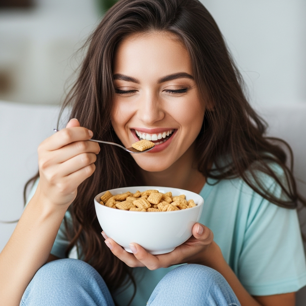 Shredded Wheat is a breakfast cereal made from whole wheat. It consists of small, pillow-shaped biscuits with a woven texture. It contains no added sugar or salt and is served with milk. Often eaten with fruit or honey, it's known for its high fiber content and health benefits.
