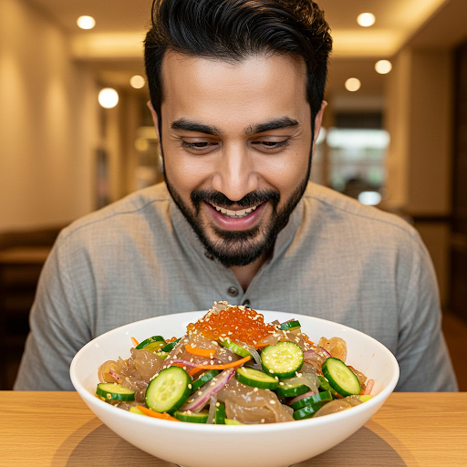 Sunomono is a delightful Japanese dish featuring thinly sliced cucumbers bathed in a tangy, sweet rice vinegar dressing. Its crisp texture and refreshing taste make it an exquisite palate cleanser. Enjoyed as an appetizer or side dish, it highlights the delicate balance of simplicity and sophistication in Japanese cuisine.