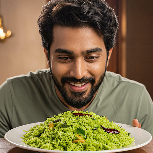 Karivepaku Rice is a fragrant South Indian dish that highlights the unique aroma of curry leaves. This vibrant rice dish layers nutty, earthy flavors with a hint of tanginess. Each bite combines a delightful crunch from roasted lentils and spices, making it an irresistible accompaniment to any meal.