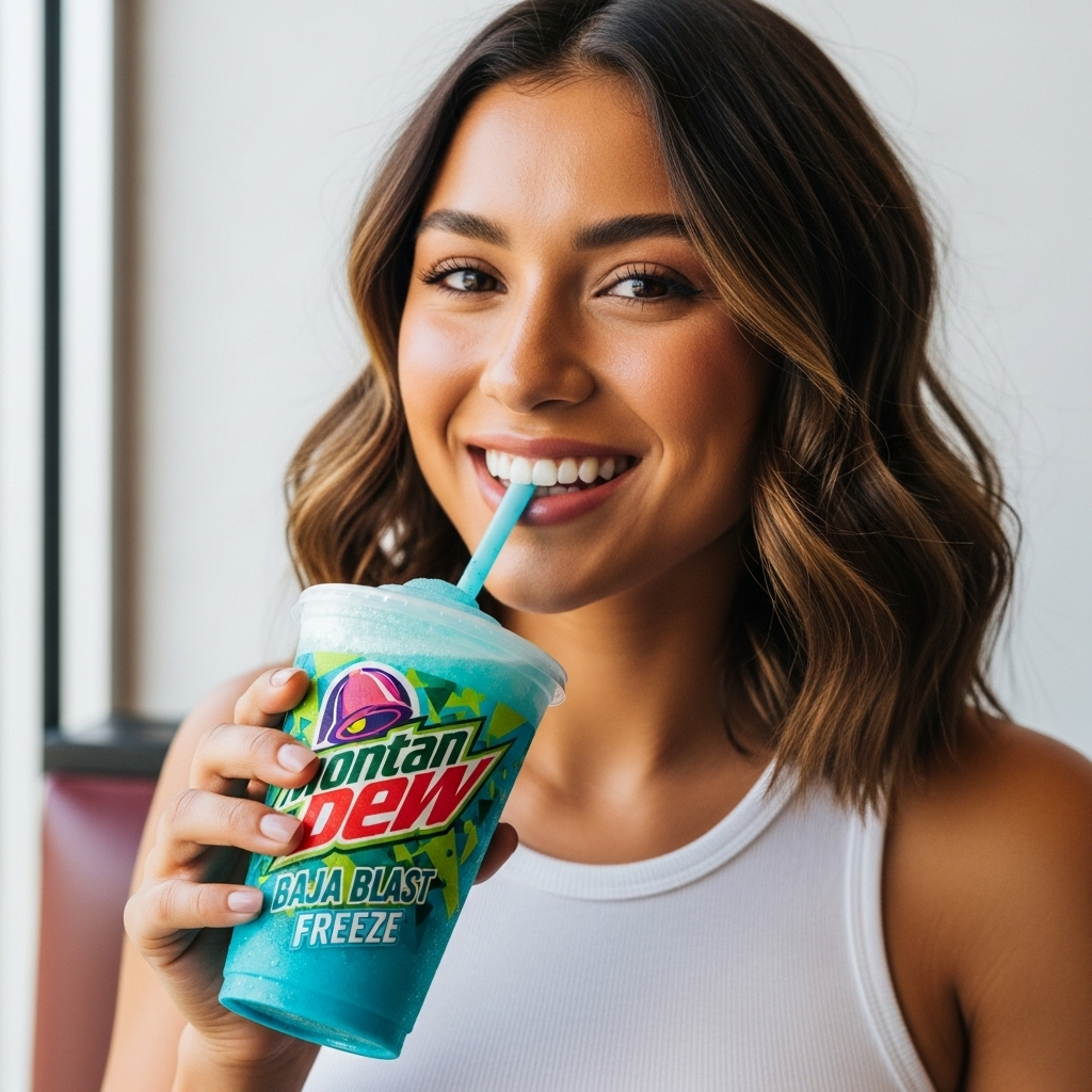 Taco Bell Mountain Dew Baja Blast is a tropical-flavored soft drink. It's exclusively available at Taco Bell restaurants. The flavor combines lime and tropical fruit, creating a refreshing taste. Baja Blast has a light blue-green color and is popular for its unique taste that complements Taco Bell's menu items.