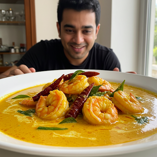 Chemeen Curry is a vibrant shrimp dish originating from Kerala, India. It combines succulent prawns with a rich, coconut milk-based sauce, infused with spices like turmeric, chili, and coriander. The curry??s creamy texture and fiery flavor capture the essence of coastal Indian cuisine, offering a tantalizing experience for seafood lovers globally.
