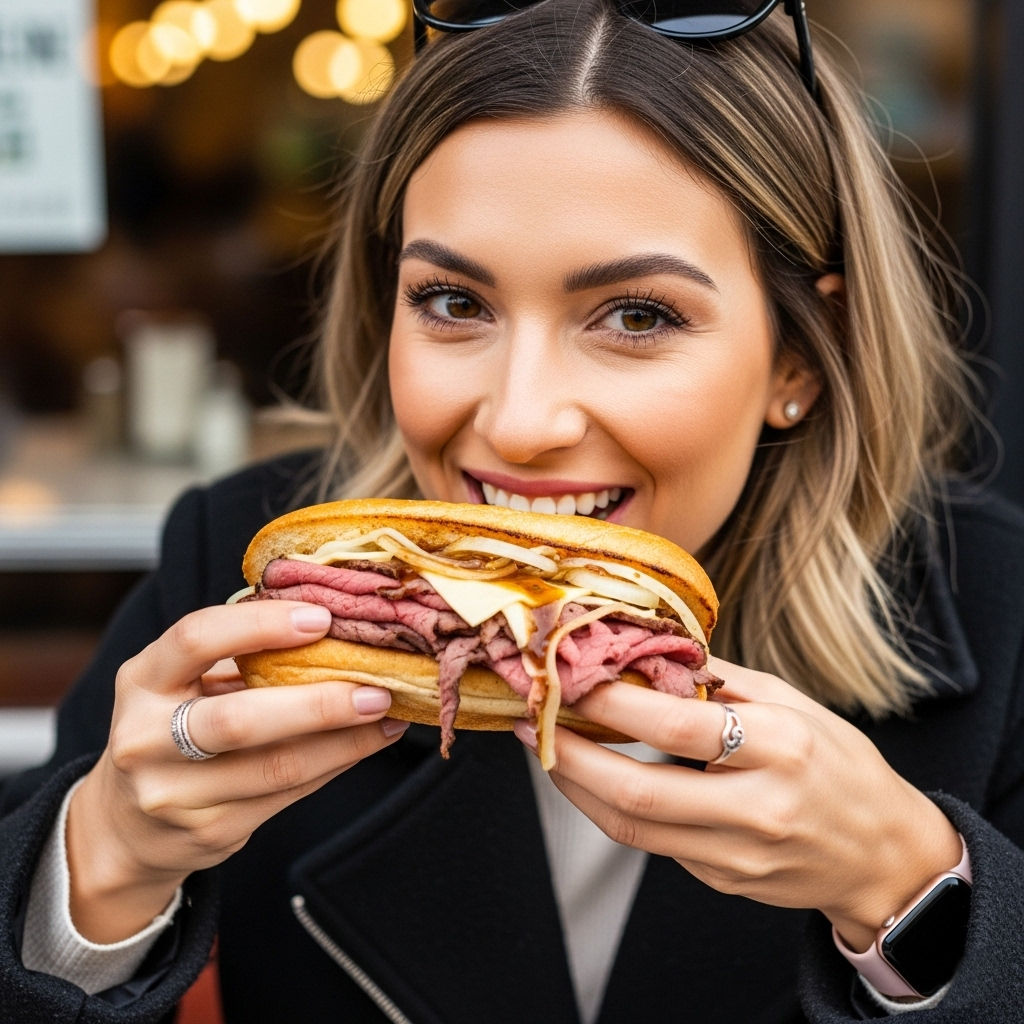 The Classic Roast Beef Sandwich features thinly sliced roast beef, usually served on a soft roll or bread. It often includes toppings like lettuce, tomato, and onion, and is commonly dressed with condiments such as mayonnaise or mustard. This sandwich offers a savory and hearty taste experience.