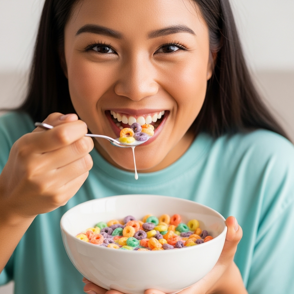 Froot Loops are a colorful, ring-shaped breakfast cereal made by Kellogg's. They come in various fruit flavors, although all taste similar, and are made from corn flour and sugar. Popular with children, they are often served with milk. The bright colors make them visually appealing.