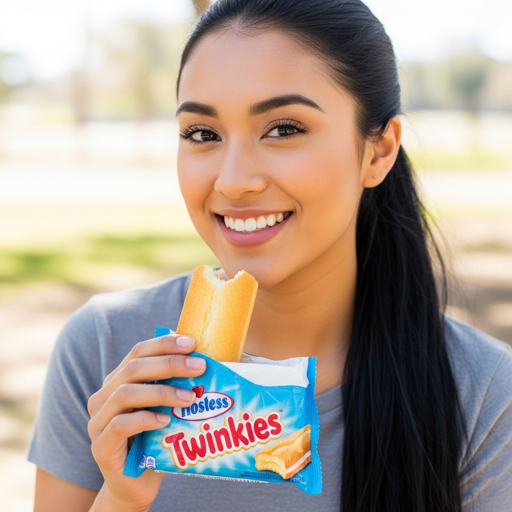 Hostess Twinkies are popular American snack cakes. They are soft, yellow sponge cakes filled with sweet vanilla cream. Individually wrapped for freshness, Twinkies are known for their long shelf life. First made in 1930, they are widely available in supermarkets and are enjoyed as a sweet treat or dessert.