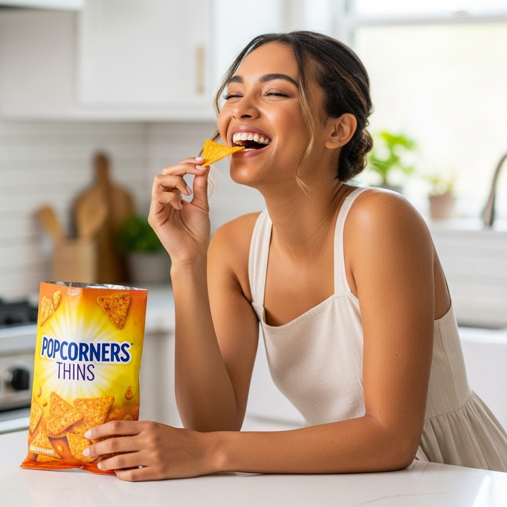 Popcorners are a crunchy snack made from popped corn. They look like triangular chips but are healthier because they're air-popped and not fried. Available in various flavors like sea salt, cheddar, and kettle corn, they offer a tasty alternative to traditional potato chips with fewer calories and less fat.