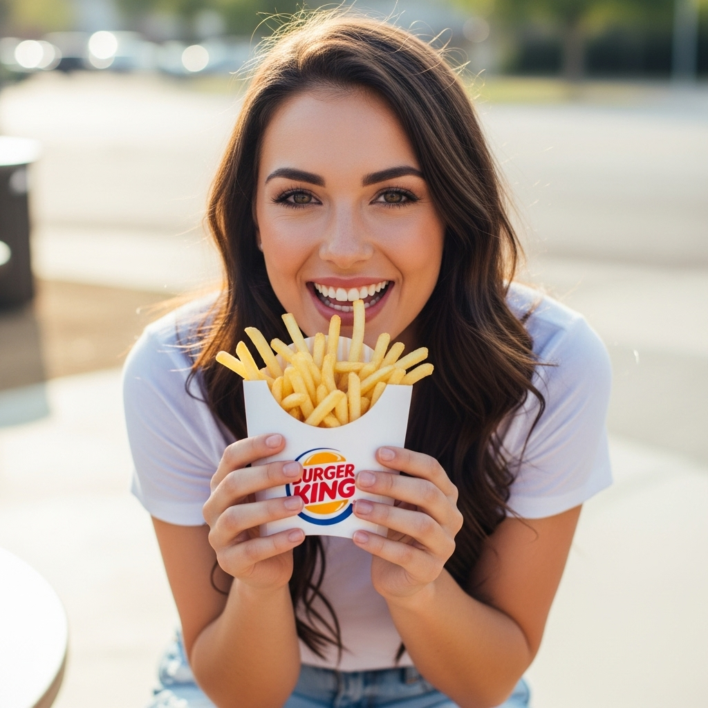Burger King French Fries are crispy, golden potato sticks served as a side dish. They are lightly salted and have a soft, fluffy inside. Often paired with burgers or other items, these fries offer a satisfying crunch. Available in different sizes, they are a popular choice worldwide.