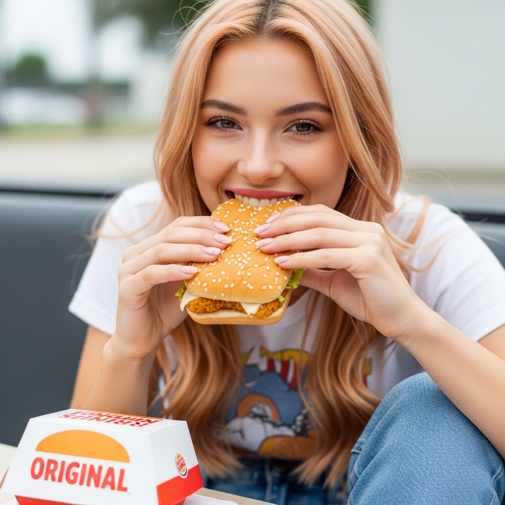 The Burger King Original Chicken Sandwich features a crispy, breaded chicken patty served on a long sesame seed bun. It includes fresh lettuce and creamy mayonnaise. The sandwich is known for its straightforward, classic taste and is a popular choice for those who enjoy a simple chicken meal.
