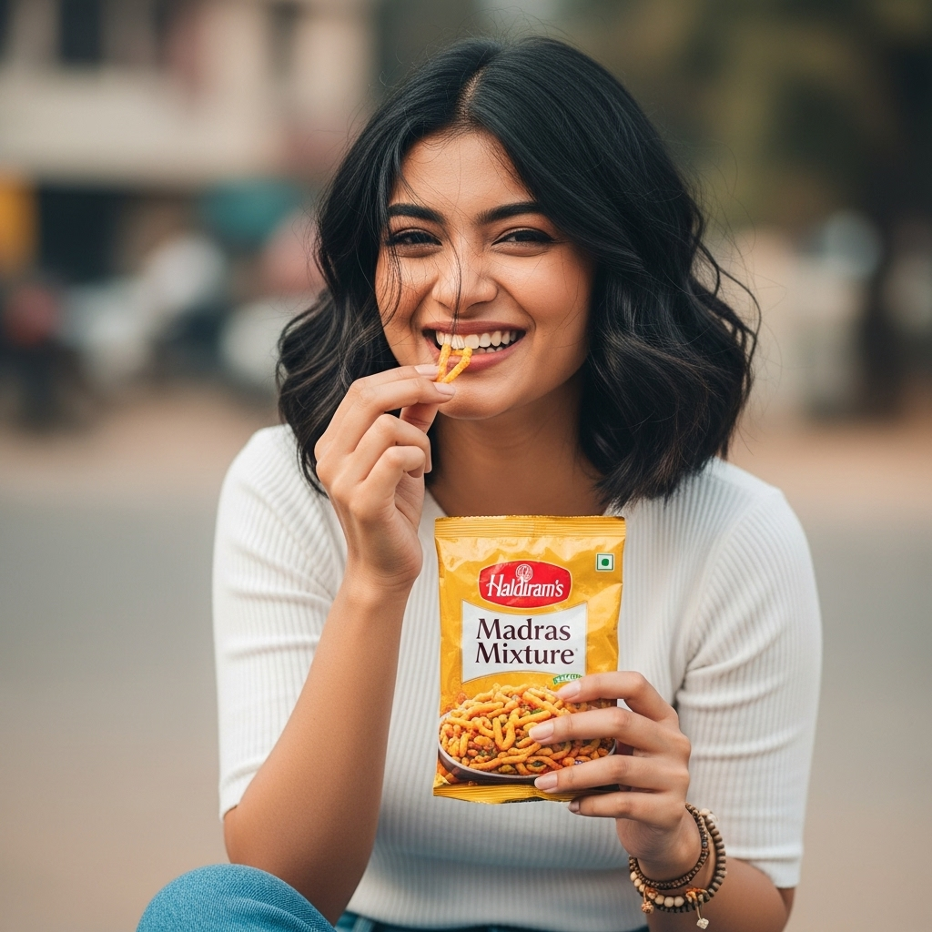 Haldiram's Madras Mixture is a popular Indian snack made from a blend of crunchy chickpea flour noodles, lentils, nuts, and spices. It's a savory mix with a spicy, tangy taste, often enjoyed with tea. The ingredients are fried and mixed, creating a flavorful and crispy treat.