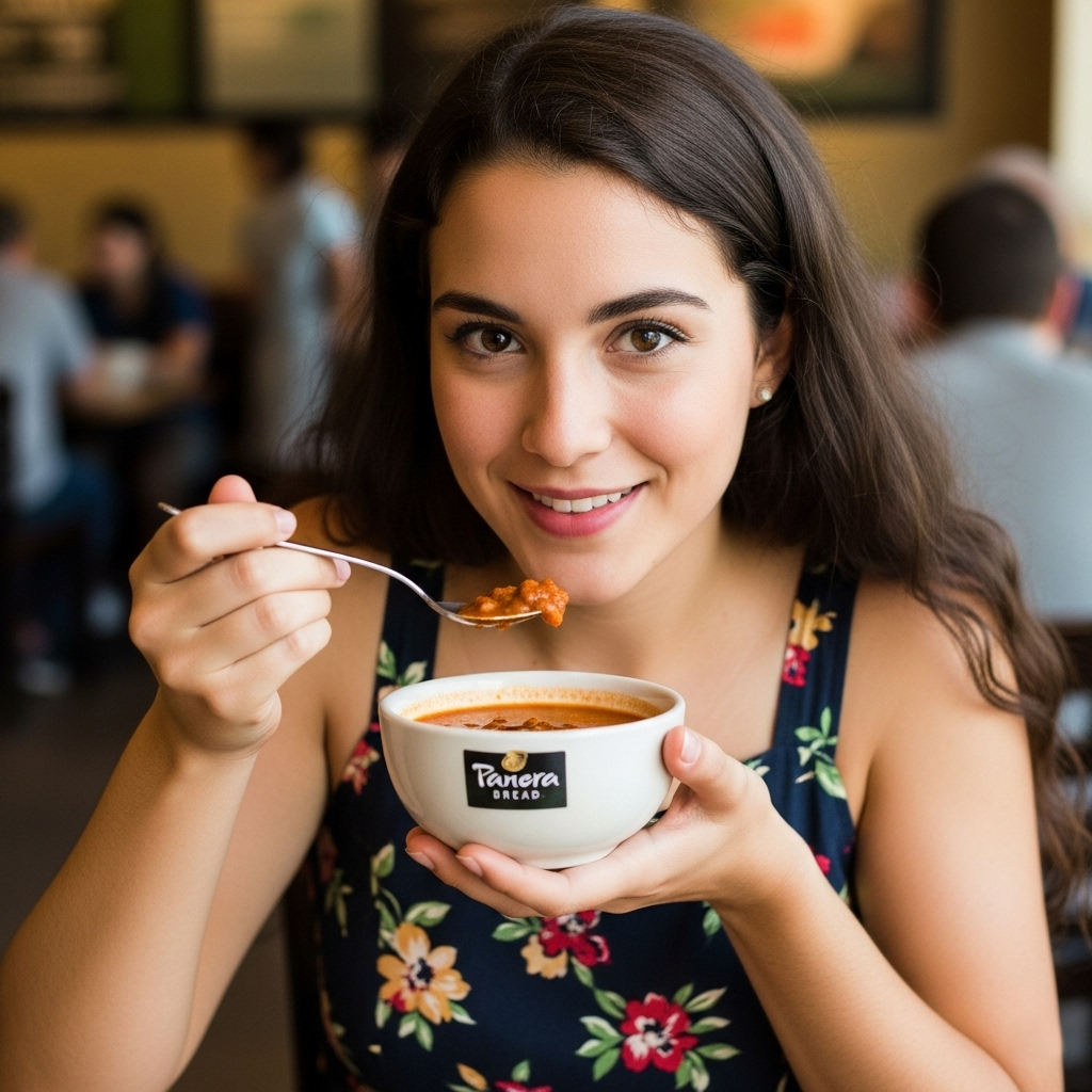 Panera Bread Turkey Chili is a warm, hearty dish made with turkey, kidney beans, garbanzo beans, and vegetables like carrots and tomatoes. It's seasoned with chili spices for a mildly spicy flavor. This chili is a comforting meal, often enjoyed with bread, providing protein and satisfying taste.