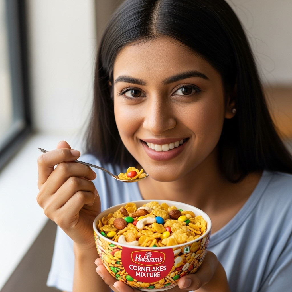 Haldiram's Cornflakes Mixture is a popular Indian snack made from crunchy cornflakes, peanuts, and spices. It offers a spicy and savory flavor, perfect for snacking. This mixture is enjoyed as a quick treat, combining the crispy texture of cornflakes with the rich taste of traditional Indian spices.