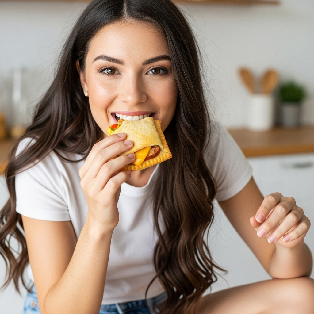 Hot Pockets are a popular American snack. They are frozen, microwavable pastries filled with ingredients like cheese, meat, or vegetables. Shaped like a rectangular pocket, they are easy to prepare and eat. Just heat them in a microwave for a few minutes, and they?e ready to enjoy.