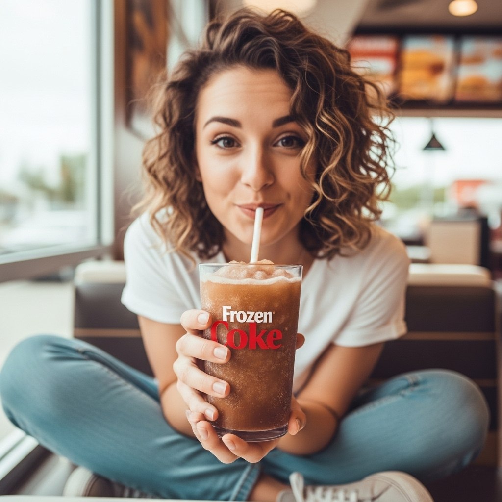 Burger King's Frozen Coke is a refreshing, chilled beverage made from Coca-Cola. It's a slushy drink, combining ice with the classic cola flavor. Perfect for cooling down on hot days, it offers the familiar taste of Coke in a smooth, icy form. Enjoy it as a sweet, cold treat.