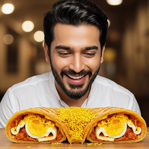 Egg Kaati Roll combines a flaky paratha with a spiced, fluffy egg filling. Originating from Kolkata's vibrant street food scene, it's renowned for its rich flavors and delightful textures. Perfectly seasoned, the roll offers a harmonious blend of spices and freshness, making it a beloved choice for any meal globally.