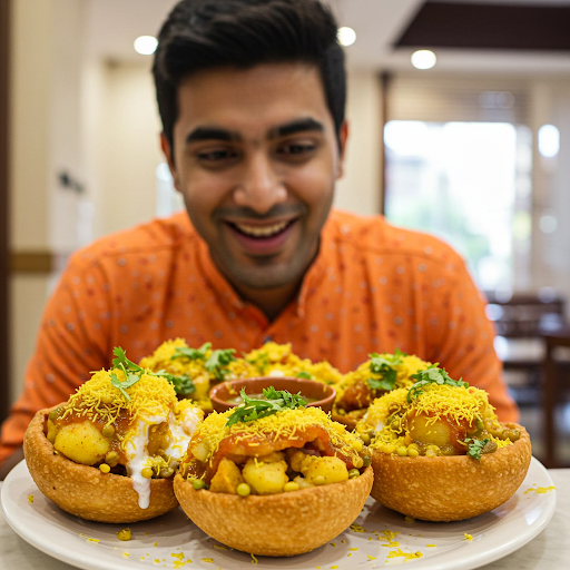 Raj Kachori, a crispy and hollow pastry shell, is generously filled with spiced potatoes, chickpeas, and yogurt. Drizzled with tangy tamarind and spicy mint chutneys, it's a vibrant explosion of flavors and textures. Celebrated in Indian street food culture, it's a delightful culinary experience for adventurous palates.