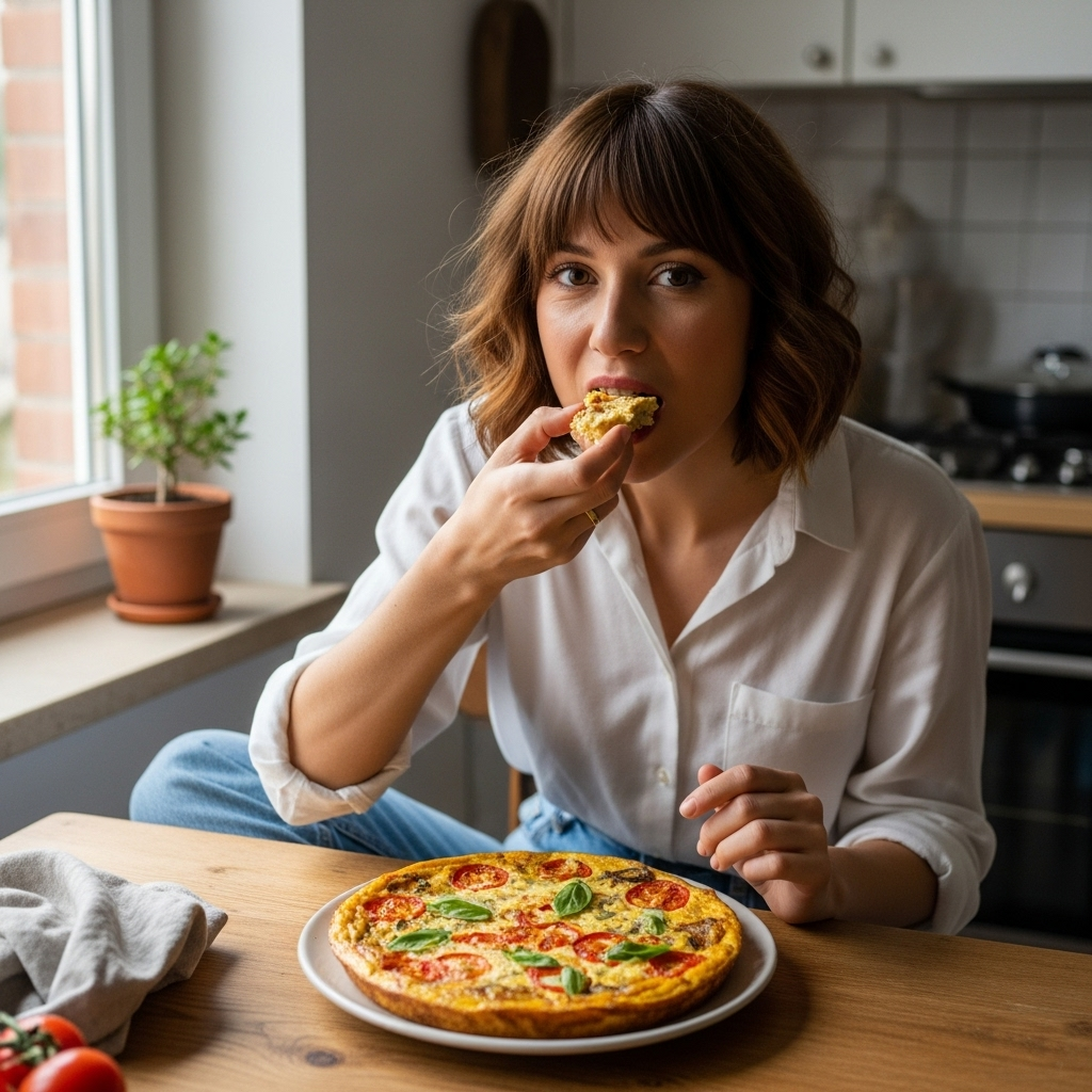 Frittata di Pasta is an Italian dish made from leftover pasta mixed with beaten eggs, cheese, and sometimes vegetables or meats. It's cooked in a skillet until firm and golden. This versatile dish can be served hot or cold, making it perfect for picnics or quick meals.