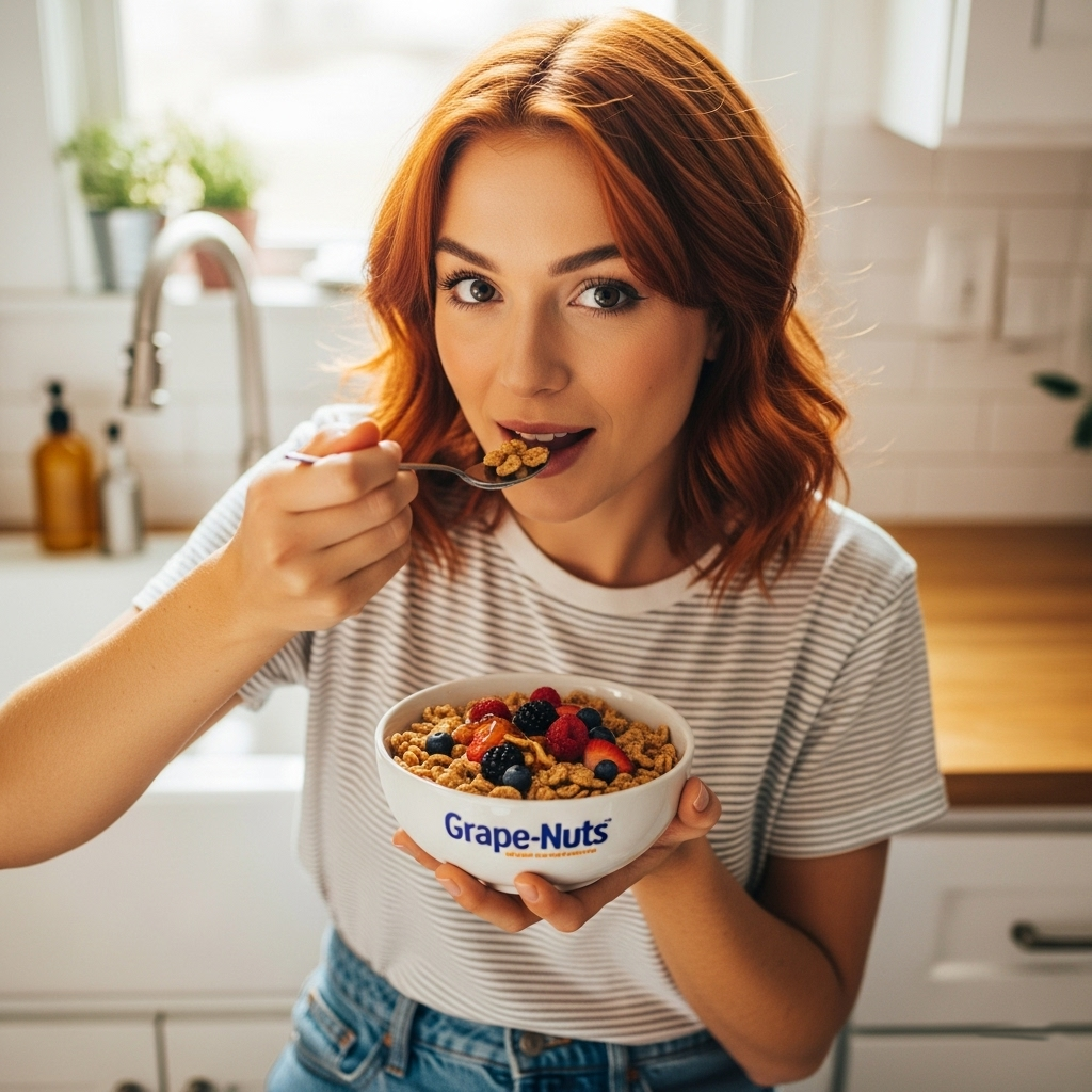 Grape-Nuts is a breakfast cereal made from wheat and barley. Despite its name, it contains neither grapes nor nuts. The cereal is crunchy, resembling small pebbles, and is often eaten with milk or yogurt. It provides a good source of fiber, vitamins, and iron, making it a healthy choice.