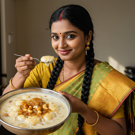 Palada Payasam is a luxurious South Indian dessert, celebrated for its silky texture and aromatic sweetness. Made from rice flakes, milk, sugar, and a hint of cardamom, its often prepared during festivals and special occasions. This delectable treat embodies comfort with its creamy consistency and delicate flavors, evoking warmth and tradition.