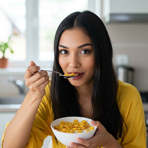 Cornflakes and milk offer a simple yet satisfying breakfast experience. The crunchy texture of cornflakes pairs harmoniously with the smooth creaminess of milk, creating a delightful contrast in every bite. Universally enjoyed, this dish is a staple in many households, celebrated for its ease, convenience, and nourishing comfort.