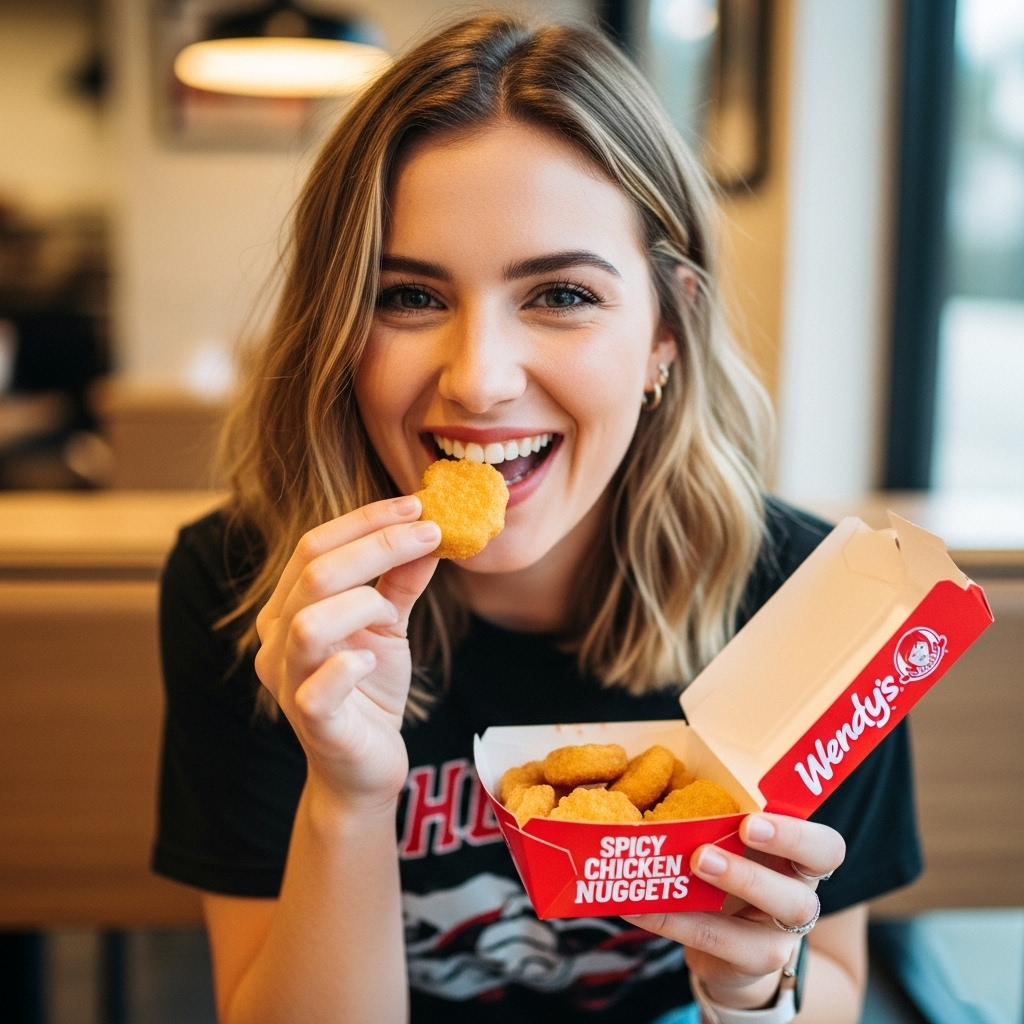 Wendy's Spicy Nuggets are bite-sized chicken pieces with a crispy, spicy coating. They are seasoned with a blend of peppers for a mild heat. These nuggets are popular for their bold flavor and are often enjoyed as a snack or meal. Available in various quantities at Wendy's restaurants.