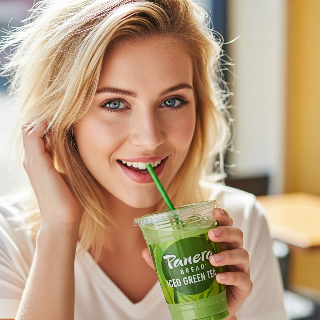 Panera Bread Iced Green Tea is a refreshing cold drink made from green tea leaves. It's lightly sweetened and has a hint of passion fruit flavor. This beverage is popular for its smooth taste and is often enjoyed as a cooling refreshment, especially during warm weather.