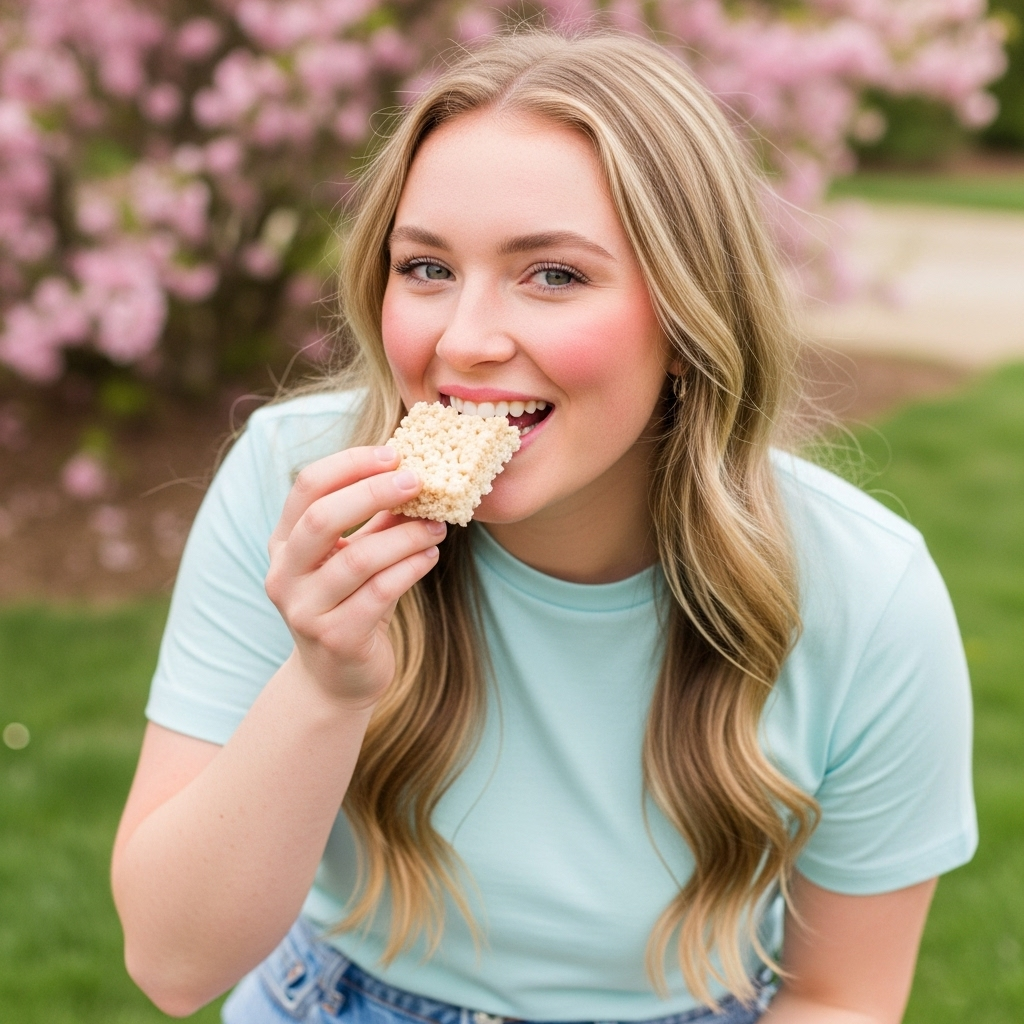 Rice Krispies Treats are a sweet snack made by mixing Rice Krispies cereal with melted marshmallows and butter. The mixture is pressed into a pan, allowed to cool, and then cut into squares. They are chewy and crispy, popular for their simple preparation and delightful taste.