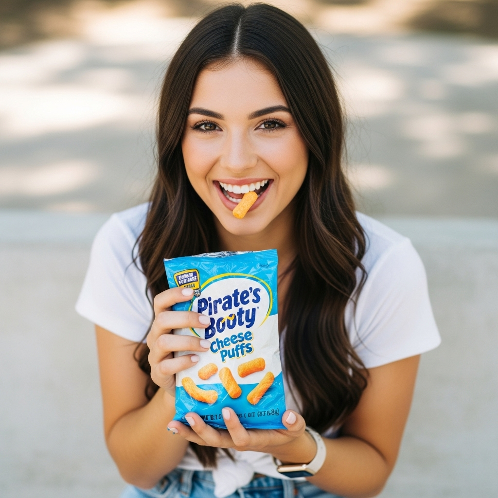 Pirate's Booty is a popular snack made from puffed rice and corn, coated with a white cheddar cheese flavor. It's light, crunchy, and often enjoyed by both kids and adults. This snack is considered a healthier alternative to traditional chips, as it contains no artificial colors or preservatives.
