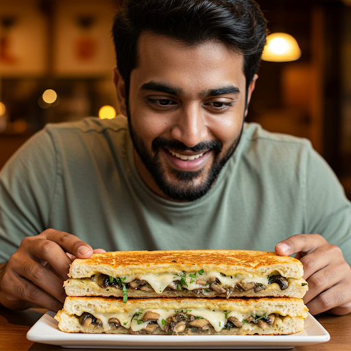 The Mushroom Panini is a delightful fusion of earthy mushrooms and melting cheese, pressed between crispy golden bread. Its hearty flavor profile, enriched with herbs, brings a comforting and sophisticated touch to any meal. This Italian-inspired culinary creation is beloved for its simplicity and versatility, appealing to global palates.
