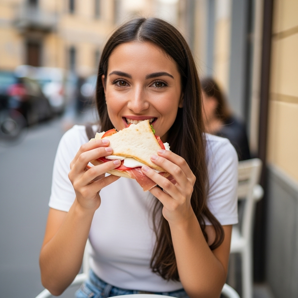 A tramezzino is an Italian sandwich made with soft, crustless white bread. It's filled with various ingredients like tuna, ham, cheese, or vegetables. Served cold, it's popular in Italian cafes and bars as a quick snack or light meal, often shaped in triangles or rectangles.