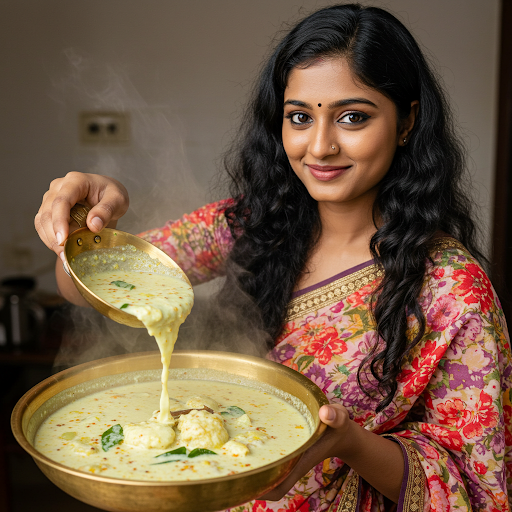 Mor Kozhambu is a South Indian delicacy, blending tangy yogurt with aromatic spices and coconut. This creamy stew harmonizes with the subtle heat from chilies and the earthy fragrance of curry leaves. Typically paired with rice, it offers a unique taste experience, representing the rich culinary heritage of the region.